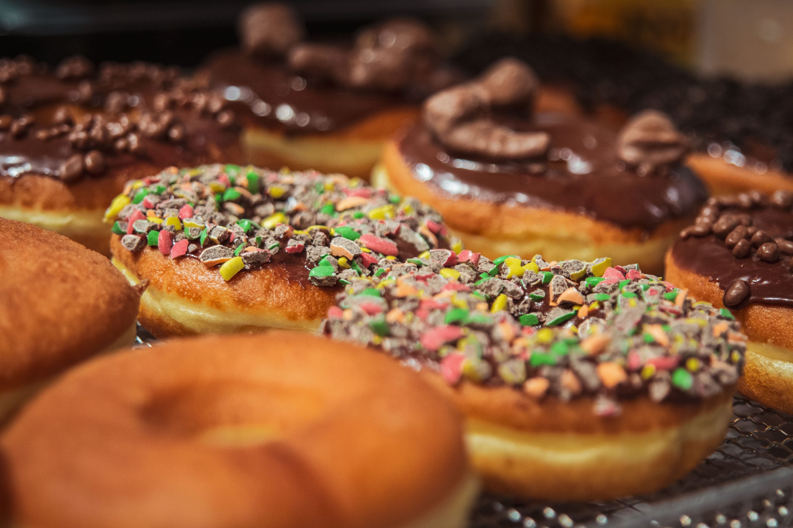 Saftige donuts med glasur og pynt i alle varianter og farger.